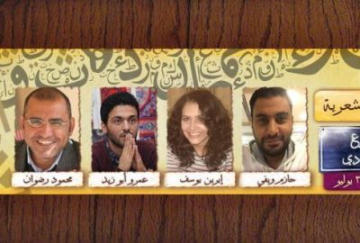 يستضيف فرع مكتبة “ألف” بالمعادي، في الثامنة من مساء الإثنين 31 يوليو، أمسية شعرية لأربعة من شعراء العامية المصرية، هم (محمود رضوان، عمرو أبوزيد، إيرين يوسف، وحازم ويفي)، ويلقي الشعراء الأربعة خلال الأمسية عددا من قصائدهم، إضافة إلى مناقشة حول الساحة الشعرية والثقافية بشكل عام.