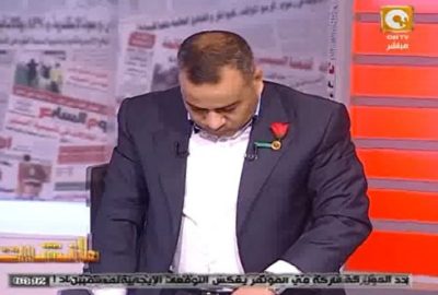 وقف الإعلامي جابر القرموطي، دقيقة حداد على أرواح الشهداء المصريين بمناسبة ذكرى يوم الشهيد غدًا، واضعًا وردة حمراء علي بدلته.