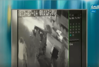عرض الإعلامي جابر القرموطي، فيديو لحادث دهس مواطن وزوجته بمدينة طنطا بالغربية، حيث كانا يستقلان الدراجة النارية الخاصة بهما، في اللحظة التي قامت إحدى السيارات الطائشة بدهسهما، وهو ما أودى بحياة الزوج.