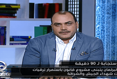 أضاف خلال مداخلة لبرنامج “90 دقيقة” الذي يعرض على قناة المحور ويقدمه الكاتب الصحفي محمد الباز، أنهم قرروا أن يقدموا مشروع قانون ينص على ترقية المصابين والشهداء كما لو أنهم ما زالوا بالخدمة، حتى يصلوا إلى رتبة لواء، كما سيتم رعاية أسر المصابين والشهداء.