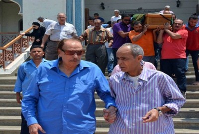 شيع الفنان القدير عزت العلايلى جنازة زوجته السيدة سناء الحديدى، والدة الدكتور محمود العلايلى رئيس حزب المصريين الأحرار، عقب صلاة ظهر اليوم من مسجد المروة بمدينة دريم لاند فى 6 أكتوبر.