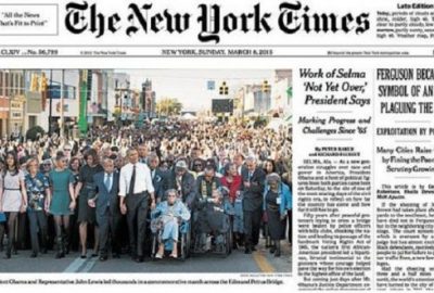 بعد حذفها صورة الرئيس الأمريكي السابق جورج بوش من صورة مسيرة “سيلما” على غلافها، واجهت صحيفة “نيويورك تايمز” اتهاما بالانحياز لليبراليين.