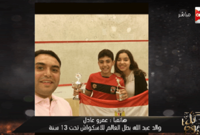 قال عمرو عادل، والد عبد الله بطل العالم للإسكواش تحت 13 سنة، إن ابنه استطاع أن يحصل على المركز الأول بعد لعبه 6 مباريات حتى يصل للنهائي، وواجه في النهائي لاعبا من الهند.