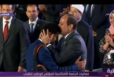 فيما رحب الرئيس السيسي به، قائلاً: “اسمح لي أرحب بك وأشكرك وأسجل كل تقديري واحترامي ومحبتي لك.. والمشاركون والمشاهدون يشاركونني هذا الشعور.. أنا بشكرك وسعيد بوجودك معايا، وإحنا مسؤولين إننا نلبي ونجاوب عن كل مطلب وصوت توقع أن تصل برسالتك إلينا، عشان الناس تعرف إننا عاوزين نسمع بعضنا، وممكن نحل كل مشاكلنا حتى لو كانت صعبة؛ أنا سعيد وأتشرف بوجودك”.