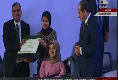 – الطالب ياسين الزغبي، الذى واجه تحديات الإعاقة وطاف عدد كبير من محافظات مصر بدراجته الهوائية لجمع شكاوى المصريين لعرضها على الرئيس.