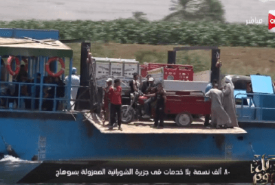 عرض الإعلامي عمرو أديب، تقريرًا مصورًا يظهر فيه أبرز المشاكل التي يُعاني منها أهالي جزيرة “الشورانية” بمحافظة سوهاج، حيث يعتمد الأهالي على “المعديات” التي تعمل حتى الساعة الثانية عشر منتصف الليل، في التنقل من الجزيرة إلى وسط المدينة.
