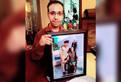 الهدية التي تم إرسالها إلى “خالد” في منزله بمحافظة المنوفية، عبارة عن صورتين تذكاريتين تجمعهما، بعد تكبيرهما ووضعهما في “برواز” فاخر، بالإضافة إلى اسطوانتين مدمجتين تحتويان على ٣٠ صورة أخرى من المؤتمر.