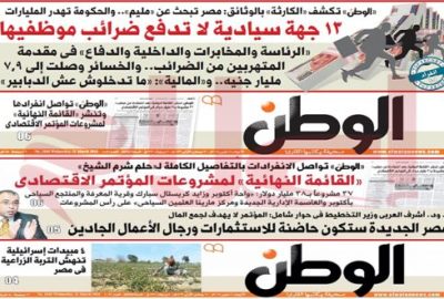 وغيرت الجريدة إشارات الصفحة الأولى بعد حذف التحقيق، ليتصدرها المؤتمر الاقتصادي، علماً بأن التحقيق تضمن التأكيد على خسائر بأكثر من 7 مليار جنيه نتيجة تهرب المؤسسات الكبرى من سداد الضرائب.