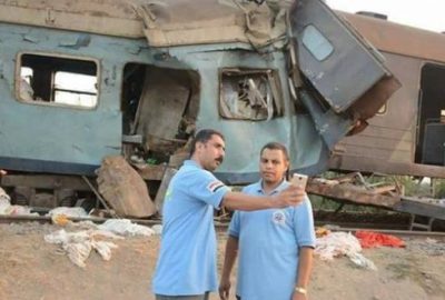 كان رواد مواقع التواصل الاجتماعي، خلال الساعات القليلة الماضية، قد تداولوا صورة لرجلين من هيئة الإسعاف، يلتقطون صورة “سيلفي” أمام قطاري الإسكندرية، حيث أسفر حادث عن سقوط 40 متوفيًا و123 مصابًا تقريبًا، الأمر الذي أثار جدلًا واسعًا على “السوشيال ميديا”، مُتهمين إياهم بالإهمال.