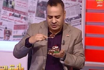 حيث أحضر القرموطي معه قطعة جاتوه وتناولها، وقال “كل سنة وانت طيب ياشيخ بن زايد وياريت الرئيس السيسي يجيب تورتة لكل رئيس عربي في عيد ميلاده ولفتة حلوة منه بصراحة..تاخدوه حتة جاتوه ”