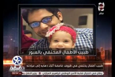 سلط الإعلامي معتز الدمرداش، الضوء على قضية اختفاء طبيب أطفال يدعى سيف عبد اللطيف، وحدوث ذلك خلال ذهابه إلى عمله، الذي يقع في نطاق منطقة سكنه، بمدينة العبور.