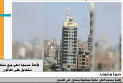 وتساءلت: “هل سيتم إزالة المبنى المكون من 12 طابق وجامع في الطابق الـ 13 أم سينتظر المسؤولون حتى يميل العقار أو يقع على رؤوس المواطنين بحجة وجود جامع أعلى العقار؟!”.