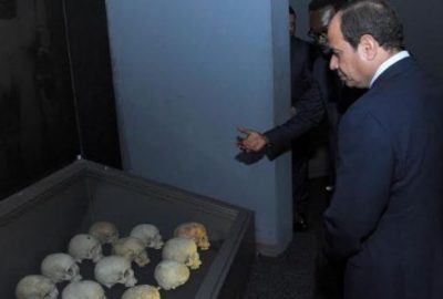 وصرح السفير علاء يوسف المُتحدث الرسمي باسم رئاسة الجمهورية بأن الرئيس توجه بعد ذلك لزيارة النصب التذكاري لضحايا الإبادة الجماعية في رواندا، حيث قام بوضع إكليل من الزهور على النصب التذكاري، كما تفقد المتحف الملحق بالنصب التذكاري والذي يحوي توثيقاً للمذابح التي جرت في رواندا في تسعينات القرن الماضي، وقام كذلك بالتوقيع في سجل الزيارات، حيث أعرب عن أسفه لسقوط الضحايا الأبرياء، وأكد أهمية التعايش المشترك بين مختلف أطياف البشر، وبحيث يكون التعاون والحوار والسلام هو اللغة السائدة بين مختلف شعوب العالم، معرباً عن تمنياته بألا تتكرر مثل هذه الأعمال البشعة وأن يعم السلام كافة بقاع العالم.