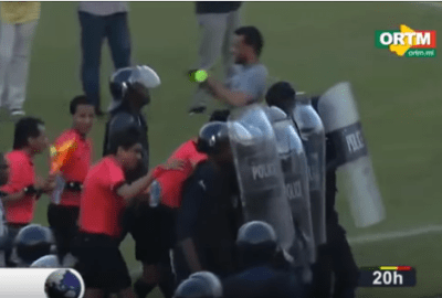 ذكر موقع “فوت مالي” أن الجمهور كان غاضبًا من قرارات إبراهيم نور الدين، وهو ما استدعى تدخل الشرطة، حيث أطلقت القنابل المسيلة للدموع، وخرج الحكم في حراسة قوات الأمن من الملعب.