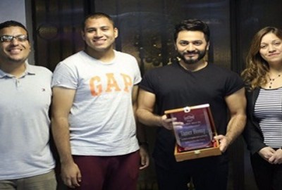 وقدمت له الدكتورة لمياء سامح مدرس الصحافة، درع الكلية تقديرا لأعماله الفنية المتميزة كأول مطرب مصري وعربي يضع بصمته بالمسرح الصيني بهوليوود.