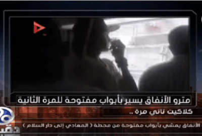 من جانبها قالت أماني نبيل، الصحفية بجريدة “الوطن” والتي صورت الفيديو، خلال اتصال هاتفي مساء الأحد مع “الدمرداش”، ببرنامج “90 دقيقة” الذي يعرض على شاشة “المحور”، إن الركاب المنتظرين في محطة حدائق المعادي فوجئوا بوصول المترو من محطة المعادي بأبواب مفتوحة، لافتةً إلى أن بعض الركاب استقلوا المترو وآخرين لم يفعلوا.