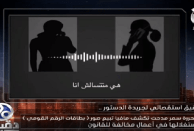 عرض الإعلامي معتز الدمرداش، جزءًا من تحقيق استقصائي أعدته سمر مدحت الصحفية بجريدة الدستور، حيث يكشف التحقيق استغلال بعض أصحاب المكتبات وأماكن تصوير المستندات، لصور بطاقات الرقم القومي للمواطنين، حيث يقومون بالاحتفاظ بنسخة سرية، يتم استغلالها وبيعها.