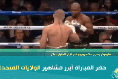وحافظ مايويذر (40 عاما)، بطل العالم السابق في وزن الوسط، على سجله الخالي من الهزائم بعدما سيطر على مواجهته مع ماكجريجور (29 عاما)، أحد أبرز نجوم الفنون القتالية المختلطة (“أم أم إي”)، منذ الجولة الرابعة قبل أن يعلنه الحكم منتصرا بالضربة القاضية بإيقافه المباراة في الجولة العاشرة إثر توجيهه ضربتين خاطفتين بيسراه لمنافسه المرمي على حبال الحلبة.