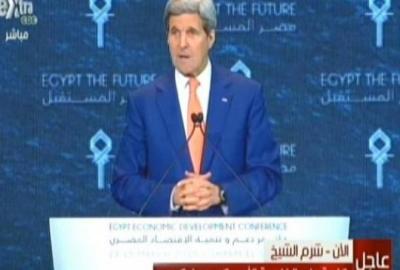 قال وزير الخارجية الأمريكي جون كيرى، إنه كان يقصد في كلمته، أمام غرفة التجارة الأمريكية، على هامش المؤتمر الاقتصادي، أمس الجمعة، أن يقول “لابد أن نعمل من أجل مستقبل مصر”.