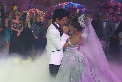 الميرغني الذي يعتبر من أبرز نجوم “مسرح مصر”، ارتدى بدلة بيضاء، والتقطت له صورا مع عروسه، خلال رقصهما معا، وسط زملائه في “مسرح مصر”.