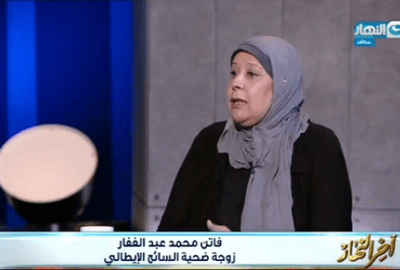 كشفت فاتن محمد عبدالفتاح، زوجة مدير الفندق القتيل، تفاصيل قتل زوجها على يد سائح إيطالي، مشيرة إلى أن زوجها قضى معهم إجازته وسافر بعدها لمكان عمله في مرسى علم، حيث كان يعمل مدير فندق مصري بالبحر الأحمر، لافتة إلى أنه كان اجتماعيًا بقدر كبير، ويعمل في مجال السياحة منذ 30 عامًا.