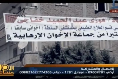 عرض الإعلامي وائل الإبراشي، تقريرًا مصورًا أوضح قيام الدكتور فوزي عبد الحميد خفاجي، رئيس قسم العلاج الطبيعي بمستشفى السنطة بمحافظة الغربية، بوضع لافتات في الشارع، تكشف تبرأه من جماعة الإخوان المسلمين، وجرائمها الإرهابية.