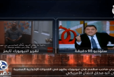 عرض الإعلامي معتز الدمرداش، تقريرًا نقلا عن “النيويورك تايمز“، عن المواطن المصري حاتم الجمسي، الذي ظهر في القنوات المصرية على اعتبار أنه محلل استراتيجي متخصص في الشأن الأمريكي، لكن اتضح أنه ليس كذلك، بل يعمل “طباخًا” بمطعم صغير هناك.