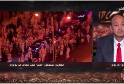 سخر الإعلامي عمرو أديب من استقبال القطريين للأمير تميم بن حمد أمير دولة قطر، عقب عودته من نيويورك، مضيفا: “هل كان في غزوة؟ لا.. كان بيحرر أرض أو بيقود قطر في الأمم المتحدة؟.. لا”، متعجبا من طلب الحكومة القطرية من الشعب، النزول لاستقبال الأمير تميم عقب عودته.