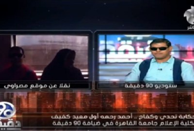 استضاف الإعلامي معتز الدمرداش فى برنامجه “90 دقيقة” الذى يُعرض على قناة “المحور” مساء اليوم الثلاثاء، أحمد رحمة، أول معيد كفيف بكلية الإعلام جامعة القاهرة، ووالدته، حيث حكى الضيف أنه فقد بصره وهو فى الصف الرابع الابتدائي واعتاد من وقتها أن يحصل على المرتبة الأولى في جميع المراحل الدراسية وصولاً إلى الثانوية العامة التي كان من أوائلها.