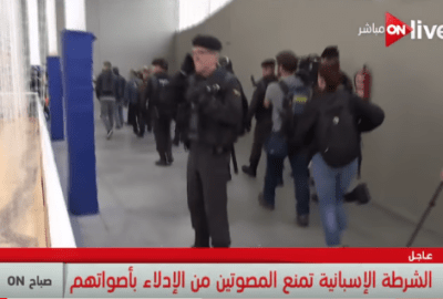 عرض برنامج “صباح أون” الذي يُبث عبر قناة “أون لايف”، صباح اليوم الأحد، مشاهد حية من المواجهات القائمة بين الشرطة الإسبانية والمواطنين، بشأن التصويت على انفصال إقليم “كاتالونيا” عن إسبانيا.