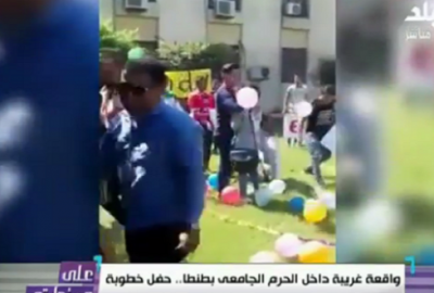 من جانبه، استنكر الإعلامي أحمد موسى الواقعة بشدة، واصفًا ما حدث بـ”المهزلة”، مضيفًا: “لما تلاقي اتنين بيعملوا خطوبة في الجامعة، لأنك لا تطبق القانون، وكل واحد بيعمل اللي هو عايزه، وما حدث في حرم الجامعة هو جريمة”.