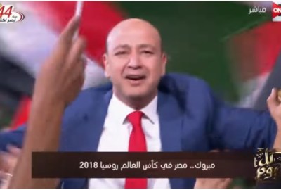 ظهر “أديب” داخل استوديو برنامج “كل يوم”، وبرفقته عدد كبير من العاملين في قناة “On E”، وفرقة شعبية، حاملين أعلام مصر، ويرقصون على أنغام الأغاني الوطنية، احتفالًا بتأهل مصر لكأس العالم.