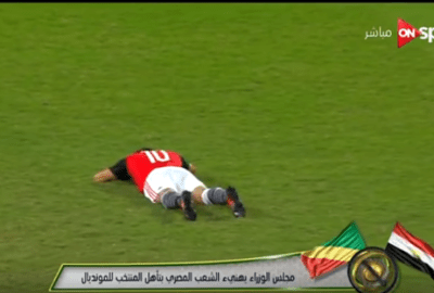 “صلاح” سقط على الأرض بمجرد إحراز الهدف، وظل لعدة ثواني مستلقيًا على بطنه ووجه في الأرض، حتى نهض فجأة وإذ به يصرخ ويعبر عن غضبه، ثم يلتفت للجماهير مشيرًا إليهم بألا يتوقفوا عن الهتاف والتشجيع، لأنه ما زال هناك أمل في الفوز.