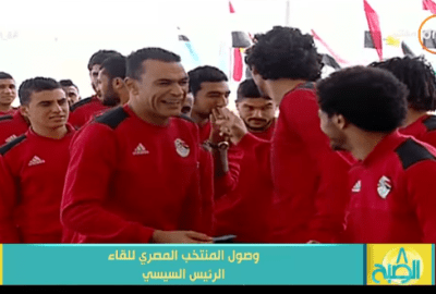 عرض الإعلامي رامي رضوان في برنامجه “8 الصبح” المذاع على قناة dmc، لقطات مصورة عن وصول المنتخب القومي للقاء الرئيس عبد الفتاح السيسي، وذلك بعد تحقيقهم تطلعات الشعب المصري بالتأهل إلى نهائيات كأس العالم، المقرر إقامتها العام المقبل في روسيا.