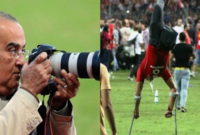9– من أكثر الصور الأخرى التي التقطها في حياتي قبل ذلك وعزيزة عليّ، هي لمدافع في مبارة لنادي سموحة ظهرت الكرة لتحل محل وجهه بينما أحد اللاعبين يركل بقدمه هذه الكرة.