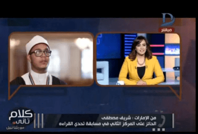 توجه شريف مصطفى، الطالب الأزهري الحاصل على المركز الثاني في مسابقة تحدي القراءة، بالشكر إلى كافة المسؤولين في الأزهر الشريف وعلى رأسهم شيخ الأزهر أحمد الطيب.