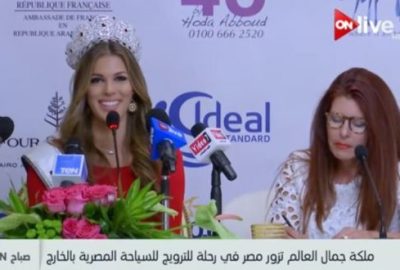 من جانبه كشف وليد البطوطي مستشار وزير السياحة عن ولع ملكة جمال الكون بالآثار حيث أكد اشتراطها زيارة الأهرامات والمتحف المصري إلى جانب بعض الأماكن الأثرية الأخرى، ما يعني شغفها بالآثار المصرية القديمة.