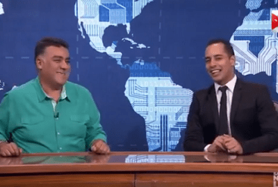 ظهر الكاتب الساخر عمرو وهبة لأول مرة كمذيع بإحدى فقرات حلقة أمس من برنامج “Saturday Night Live بالعربي” الموسم الرابع، الذي يعرض على قناة “OSN”، استضاف “عمرو” السيناريست تامر حبيب، ودار الحوار في إطار ساخر حول أغنية “تلات دقات”، التي قام “حبيب” بتأليفها مؤخراً والاشتراك في الكليب المصور لها، كما قدمت الفقرات مشاهد من بداية مشواره وظهوره الأول الصامت في فيلم “قشر البندق”، ثم مشاهده من فيلم “مبروك وبلبل” و”على جنب يا اسطى”، كما علق على علاقته الفنية بالفنان أحمد السقا قائلاً “في الأكشن انا ما بكتبش للسقا حاجة .. انا بروح أقوله العيال دول بيغلطوا فيك وأجري”.