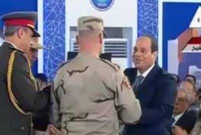 أهدى اللواء مصطفى أمين، مدير عام جهاز مشروعات الخدمة الوطنية، هدية تذكارية للرئيس عبد الفتاح السيسي، وهي عبارة عن نسخة من المصحف الشريف، خلال فعاليات افتتاح عدد من المشروعات القومية بمحافظة كفر الشيخ، اليوم السبت، قائلًا: “اسمحلي أهديلك النهاردة كتاب الله”.