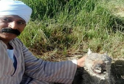 قال عبد السميع أبو فهد، مزارع بمركز “إسنا”، التابع لمحافظة الأقصر، وصاحب صورة “السيلفي” الشهيرة مع ذئب بعد اصطياده، إن المزارعين بالمنطقة يعانون من وجود عدد كبير من الذئاب في الزراعات وهو ما يشكل خطرًا كبيرًا عليهم وعلى حيواناتهم.