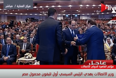 أهدى المهندس ياسر القاضى، وزير الاتصالات وتكنولوجيا المعلومات، اليوم الأحد، أول تليفون محمول صنع في مصر، للرئيس عبدالفتاح السيسي.