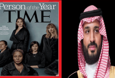 “اكتسح ولي العهد استفتاء قرّاء المجلة وحاز نسبة أصوات وصلت إلى 24% التي صوتت له بـ”نعم”، فيما احتلت المرتبة الثانية حملة “Me Too#” بنسبة 6%، أما المركز الثالث فكان من نصيب “الحالمون” وروبرت مولر وكولن كابيرنيك بنسبة متساوية 5%، ثم وزيرة الخارجية السابقة هيلاري كلينتون ورئيس الوزراء الكندي جاستن ترودو اللذان حازا نسبة متساوية أيضاً 4%، فيما حصل الرئيس الفرنسي إيمانويل ماكرون والمستشارة الألمانية أنجيلا ميركل والرئيس الروسي فلاديمير بوتين والبابا فرنسيس على نسبة 3%، أما الرئيس الأميركي دونالد ترامب والمغنية تايلور سويفت والسيناتور الأميركي جون ماكين فحصلوا جميعهم على نسبة 2%.”