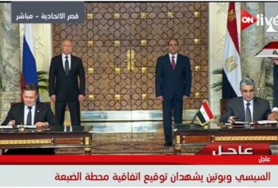 شهد الرئيس عبد الفتاح السيسي ونظيره الروسي فلاديمير بوتين، التوقيع على إشارة البدء في تنفيذ مشروع المحطة النووية بالضبعة وتزويد مصر بالوقود النووي، حيث وقع الاتفاقية الدكتور محمد شاكر وزير الكهرباء وعن الجانب الروسي المدير العام لشركة حكومة روسية للطاقة الروسية.