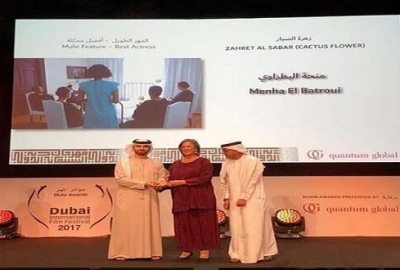 حصلت الممثلة المصرية منحة البطراوي على جائزة أحسن ممثلة في مهرجان دبي السينمائي، عن دورها في فيلم “زهرة الصبار” للمخرجة هالة القوصي، المشارك في مسابقة المهر الطويل بمهرجان دبي السينمائي.