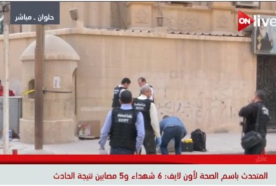 تعرضت كنيسة الشهيد مارمينا بحلوان صباح اليوم لاعتداء إرهابي بإطلاق أعيرة نارية، تجاه الكنيسة، من قبل مجهولين،ما أسفر حتى الآن عن استشهاد شخص من القوة الأمنية المكلفة بتأمين الكنيسة وخمسة من شعب الكنيسة بالاضافة لعدد من المصابين.