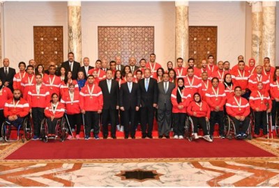 وأضاف المُتحدث الرسمي أن السيد الرئيس حرص على توجيه تحية خاصة للأبطال الرياضيين من متحدي الإعاقة، مؤكداً أنهم أبهروا العالم بإنجازاتهم ويمثلون واجهة مشرفة لمصر، حيث أكد سيادته أن هؤلاء الأبطال أثبتوا أنه بالمثابرة والعزيمة تتحقق الإنجازات رغم أي تحدي، كما أنهم ضربوا أفضل مثل في أن العمل بجد وتفانٍ هو طريق النجاح. ووجه السيد الرئيس في هذا الإطار جميع الأجهزة الرياضية المعنية بتوفير الإمكانات اللازمة لهؤلاء الأبطال الرياضيين ودعمهم بشكل كامل حتى يستمروا في تحقيق مزيد من الإنجازات الرياضية خلال الفترة القادمة.