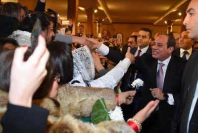 استقبل الأقباط حضور قداس عيد الميلاد، الرئيس باحتفاء بالغ، وقد حضر معه العديد من الوزراء والمسئولين، والنجوم، وألقى كلمة بمناسبة الافتتاح، أكد خلالها أن لا أحد يستطيع تفرقة المصريين وتقسيمهم، مشددًا على أن في مصر المسلم يحب المسيحي، ولن ينتشر بها الكره الذي يحاول البعض بثه في نفوس أبنائها.