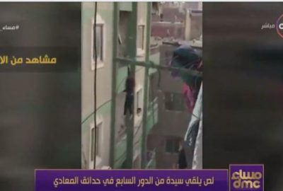 عرضت الإعلامية إيمان الحصري، تقرير عن مقطع الفيديو الذي انتشر على مواقع التواصل الاجتماعي والذي تظهر به سيدة تُلقى من الدور السابع في منطقة حدائق المعادي مما أدى إلى وفاتها.