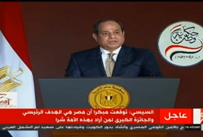 من جانبه، بدأ الرئيس السيسي كلمته خلال الحفل بوقفة تقدير للشعب المصري، لما واجهه من أزمات خلال الفترات الماضية وتخطاها بكل ثبات وصبر، مشددًا على أنه لم يكن ليتحقق ما تم إنجازه خلال هذه السنوات الأربعة، إلا بالمصريين، فالإنجاز لم يحققه شخص واحد، قائلاً: “مش حكاية لا حكومة ولا قيادة.. دي حكاية ناس شبعت من الجوع وشربت من العطش.. ناس فضلت تصبر نجحت”.