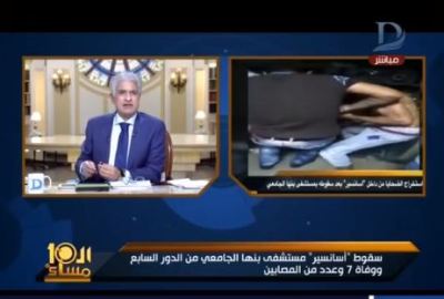أضاف “عشماوي” في مداخلة هاتفية أجراها مع الإعلامي وائل الإبراشي في حلقة الثلاثاء، من برنامج “العاشرة مساء” المذاع على فضائية “دريم”، أنه من الصعب التعرف على صاحب هذا الوصف، بعد أن أذاع “الإبراشي” فيديو مصور من محيط حادث “الأسانسير” بالمستشفى، يهتف فيه أحد المسؤولين “شعب همجي”، ما أثار استياء أهالي الضحايا والمتواجدين في محيط الحادث، ونفى المحافظ أنه قد سمعه بنفسه ولكن العبارة واضحة في الفيديو المذاع، وعلى إثره سيتم التحقيق في الواقعة.